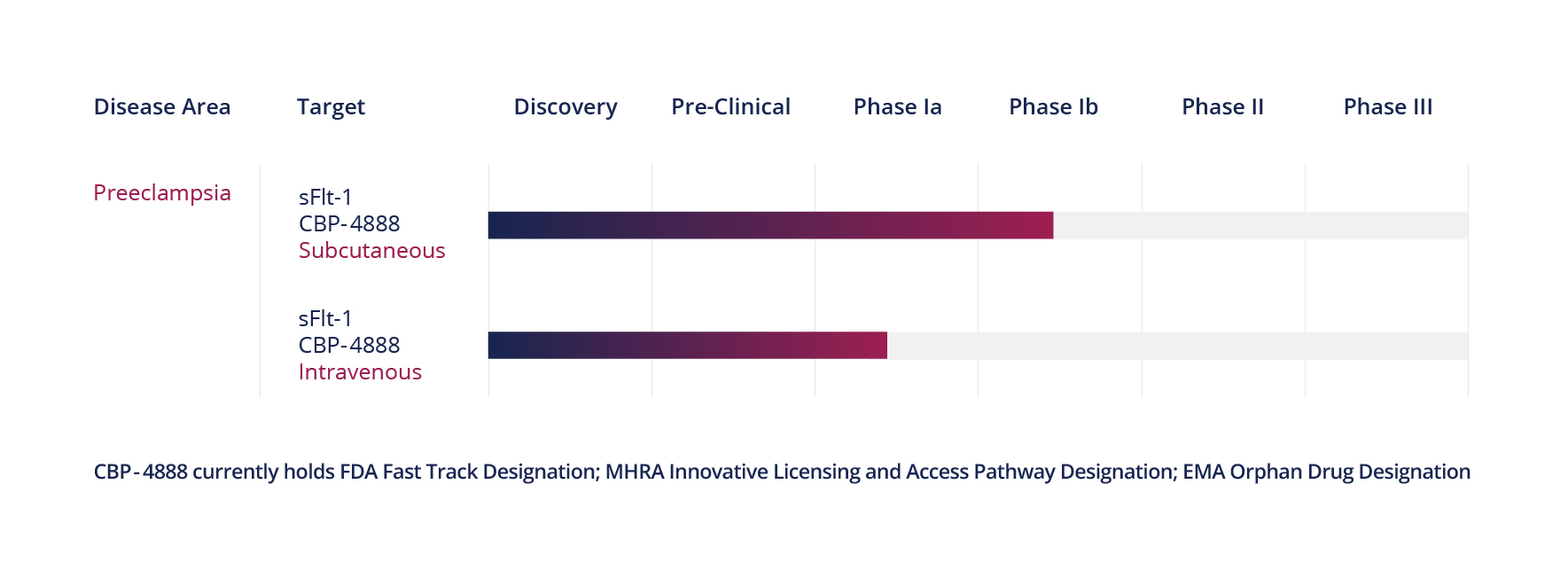 CBP-4888 is currently being evaluated in a global clinical development program to determine its ability to treat women with sFlt1-mediated preterm preeclampsia, a serious and life threatening pregnancy complication.